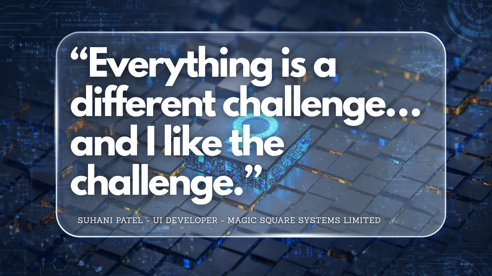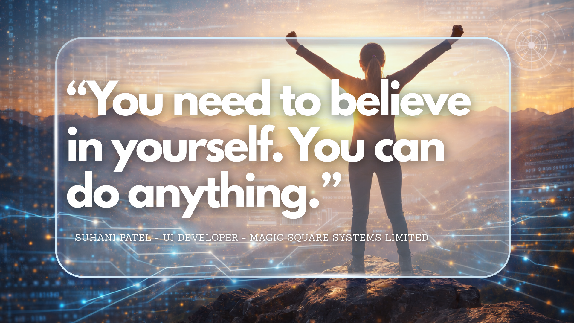 At Magic Square Systems, we’re proud to work alongside talented women in tech — including Suhani, our UI Developer, who also brings strong capability in AI-focused development. We sat down with her to talk about her journey into software, what drives her, and what she thinks matters most for the next generation.